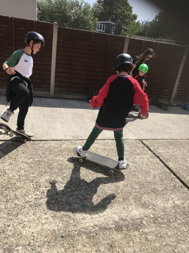 Dale from South Coast Skate Club visited the cafe to run a skateboard skills and tricks session.